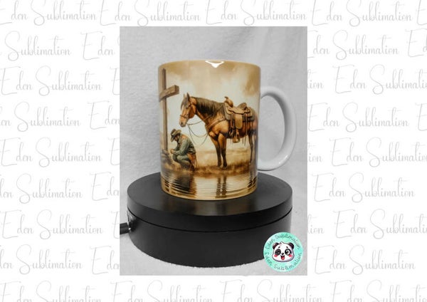 Mug Cowboy nostalgique en tons sépia – Hommage, recueillement et émotion – Eden Sublimation Vosges